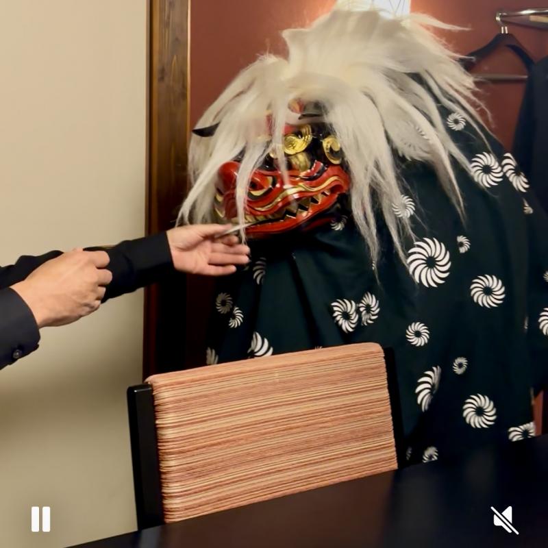 獅子舞に頭を噛んでもらい、