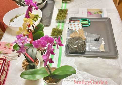 昨年と今年もスマイリーガーデンのワークショップで3月にマイクロ胡蝶蘭のコケ玉をつくりました。