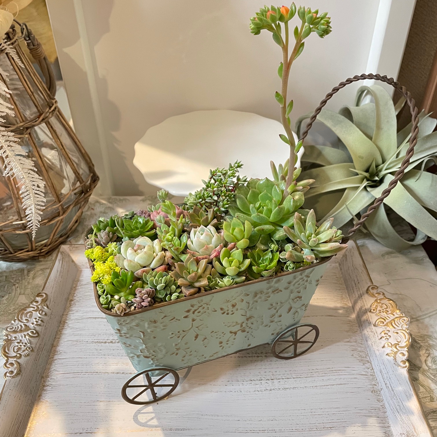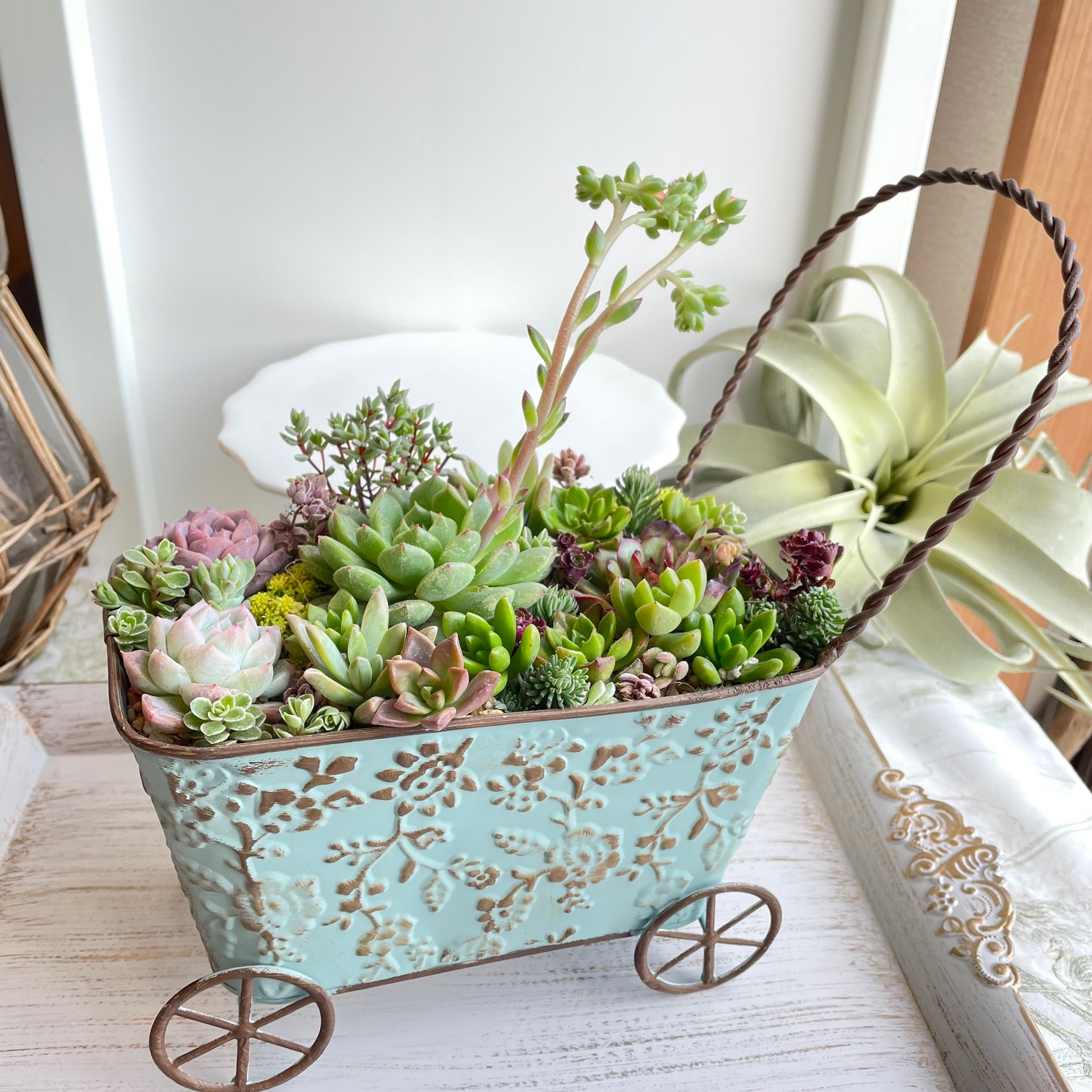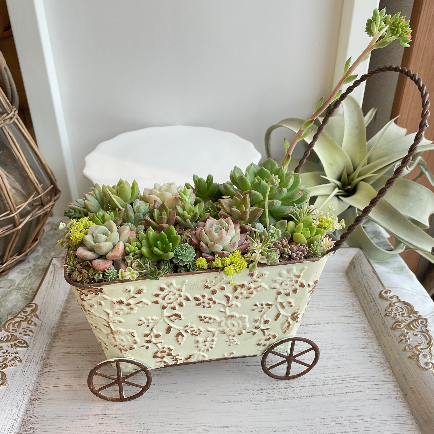 アンティーク調ブリキ鉢に多肉植物の寄せ植え