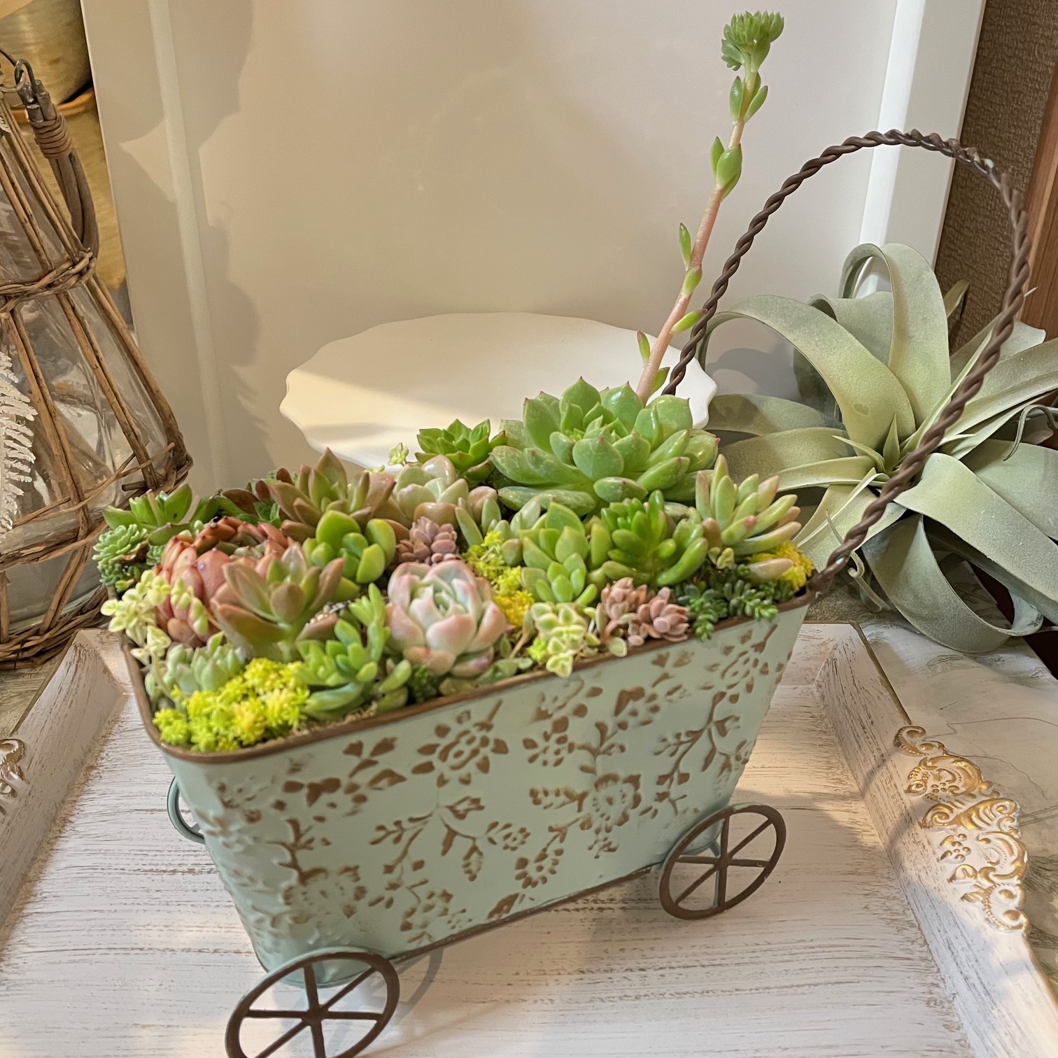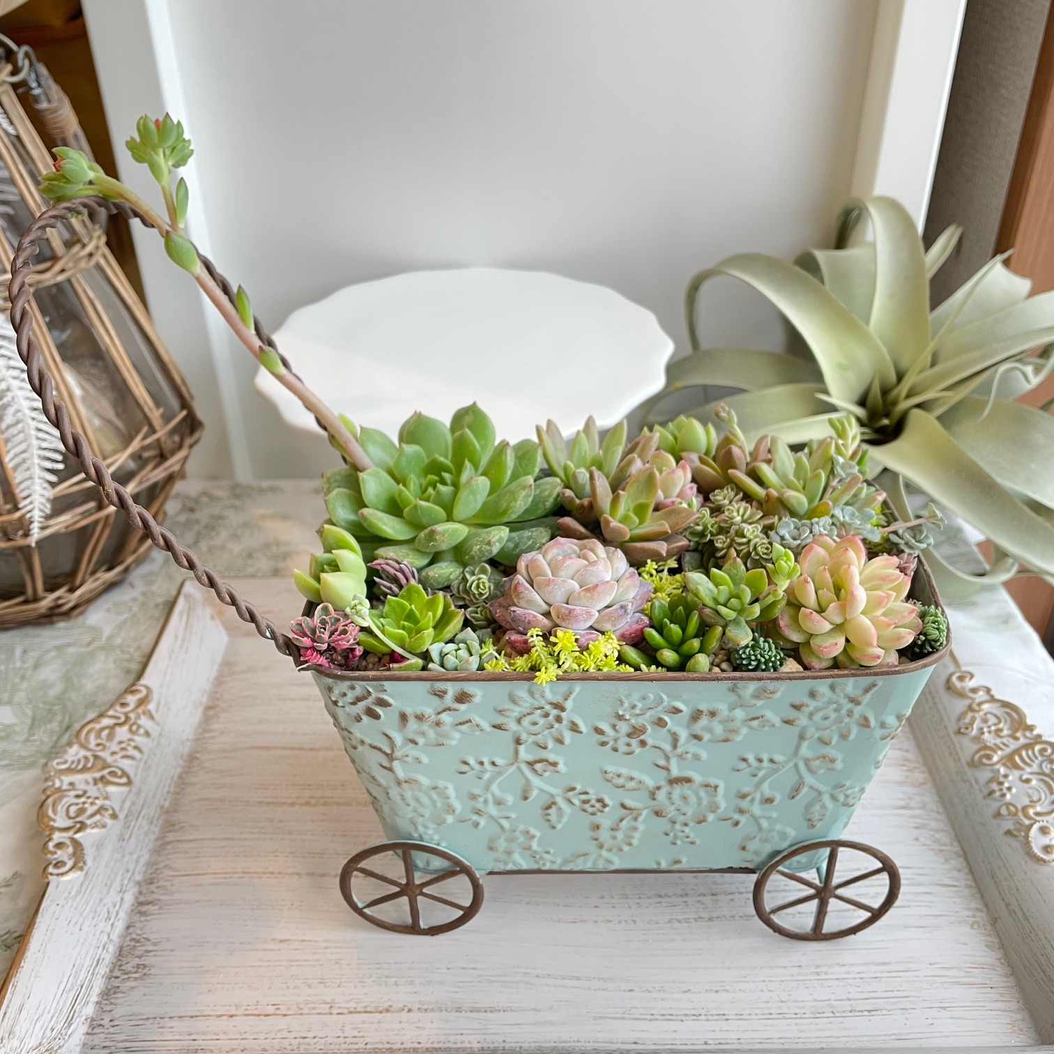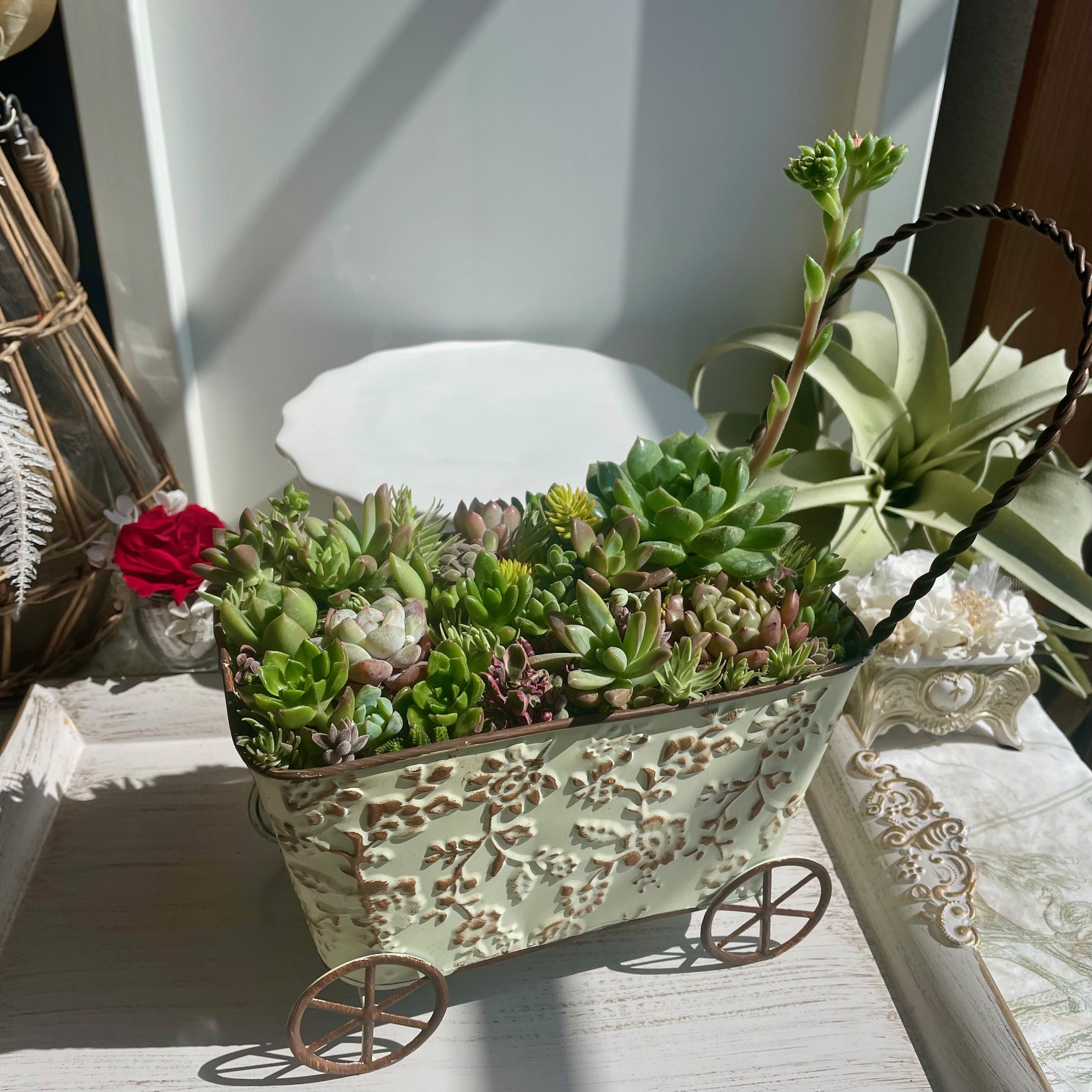 アンティーク調ブリキ鉢に多肉植物の寄せ植え