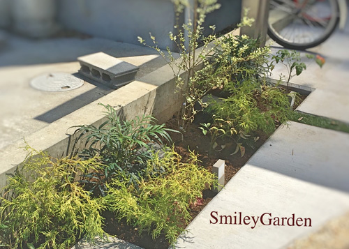 夜、家へ帰ってきた際に足元を照らすフットライトを付け植栽の中にもライティングをしました。